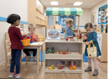 Our classrooms feature a variety of Centers designed to encourage small group engagement, including Language & Literacy, Dramatic Play, Math, Science, Construction, and more. Each Center builds on different skills, but they all foster collaboration and communication and spark new ideas. For example, while experimenting with magnets in the Science Center, one child’s curiosity might ignite a group investigation. At the Writing Center, classmates may inspire each other to add details to their stories or drawings. These moments are rich with opportunity as they help children learn from one another.